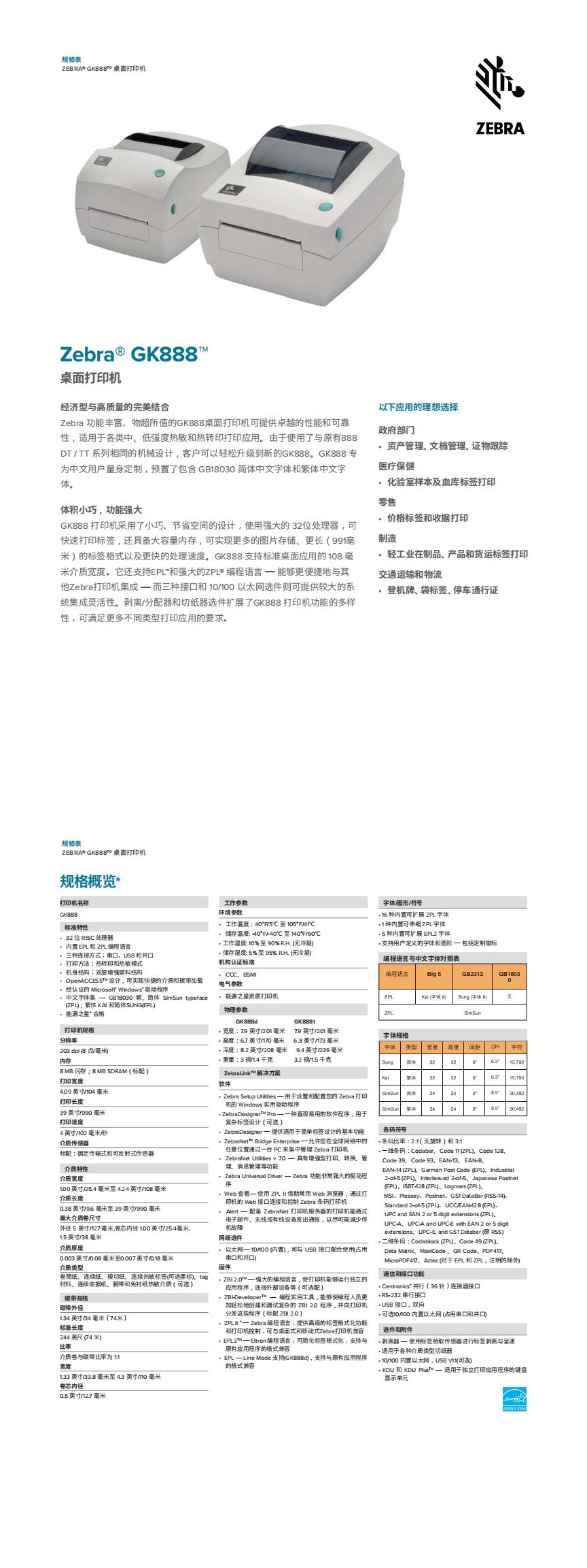 斑馬GK888 桌面打印機